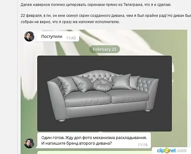 Я знал на что шел. Честно - запарили вот такие недозаки. После сообщения ТС о моделинге этих диванов в двух версиях но за 10к т.е. по сути он решил добавить 1 к за 2 дивана в разложенном виде - я все понял. На что и решил не задавать вопросов, а просто ровно на эту стоимость выполнить работу.