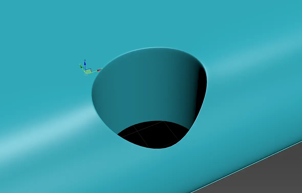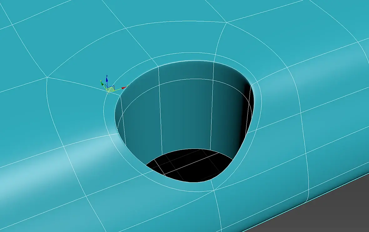 Здравствуйте. Хочу попросить совета по поводу создания отверстий под углом на изогнутой поверхности. В общем, вырезал я с помощью булеана цилиндр и подправил сетку. Но после применения TurboSmooth создается "бугорок" в месте расположения выреза на грани, которая должна быть сглажена. Я так понимаю точки отверстия создают опору и не позволяют сгладить объект должным образом, как это исправить не могу понять. Спасибо за любую помощь.