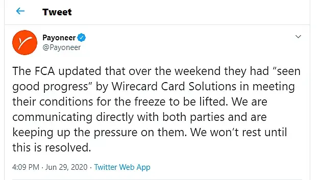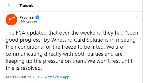 Вообще, насколько я представляю сама процедура переноса всей суммы Payoneer с Safeguard счетов Wirecard UK довольно дорогостоящая, и может нанести хороший такой урон по финансовой ситуации Wirecard UK. Поэтому Payoneer даёт пользователям недельку потратить деньги с карточки, и только уже 6-го даст возможность вывести на счета. Так как люди обросли всякими бредовыми идеями - побегут тратить деньги с карточки, а выведет деньги уже намного меньший процент. Неплохой шаг.