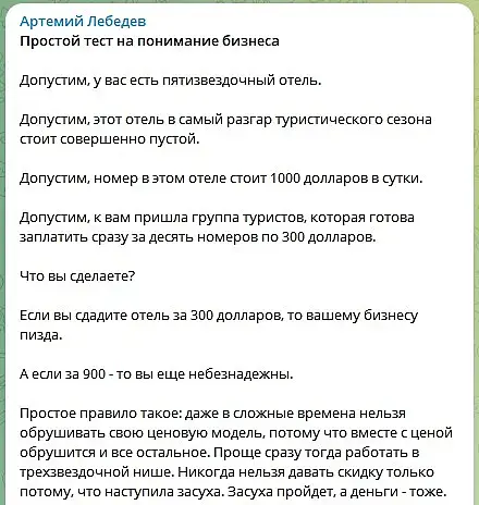 Поправьте меня если я не прав, но мой совет, скорее даже призыв: Хватит демпить рынок, надо себя уважать и работать за достойные деньги, перестаньте горбатиться за копейки! Вы работаете сутками за ср..ные 50000-70000 в месяц, теряя здоровье ,время и при этом нищие, а жизнь идёт.