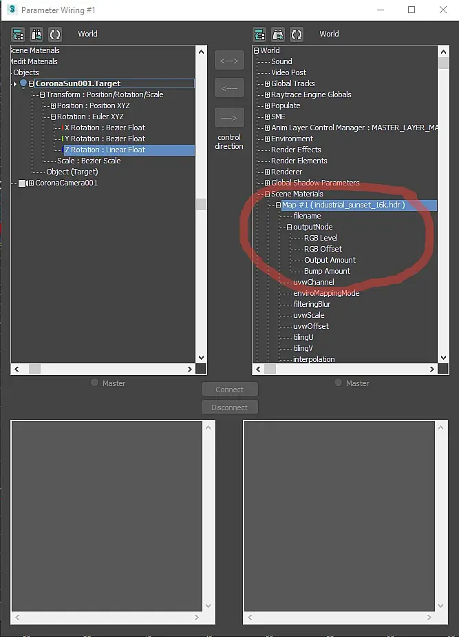 Закинул hdri карту в CoronaBitmap. На рендере все OK - рендерится. В настройках CoronaBitmap есть надпись "note environment maps are rotated by u offset", но не вращается карта через U offset. У всех так? Как привязать вообще в короне солнце к HDRI?