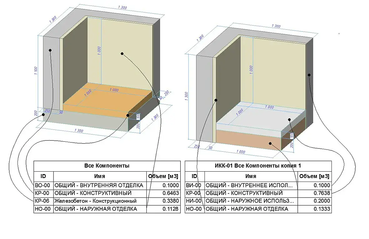 Вот например есть слой фанера, площадь слоя 0,1 м2 Высота 1.1 м , объем должен быть равен 0,11 м3, он пишет 0,12. Конечно это не большая разница. А если таких стенок например 100 он все просуммирует и сделает уже ошибку на 1м3