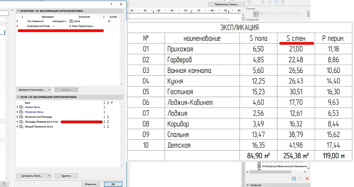 Еще есть очень классный инструмент, Аксессуары стен, но он считает площадь двойную.