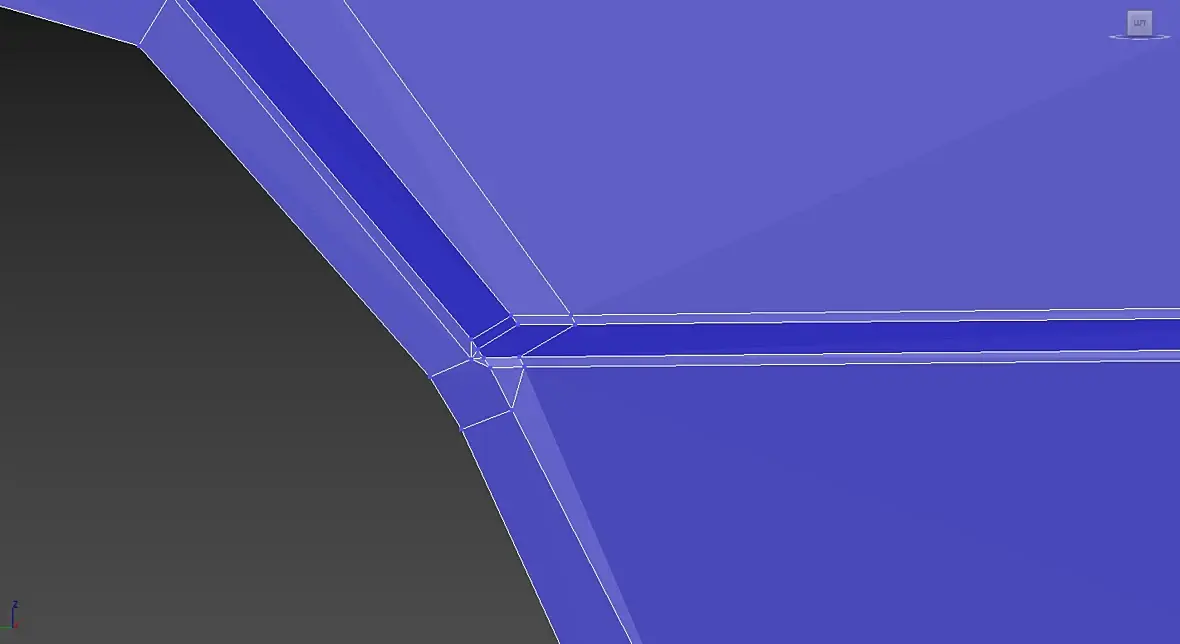 ну это так)по сути я показал только принцип для определенного стыка граней. далее надо смотреть на форму в целом ,строение сетки и т.д. а уже потом внедрять его туда.. я бы в целом собирал бы примерно так сетку. убрав длинные грани и треугольные полигоны