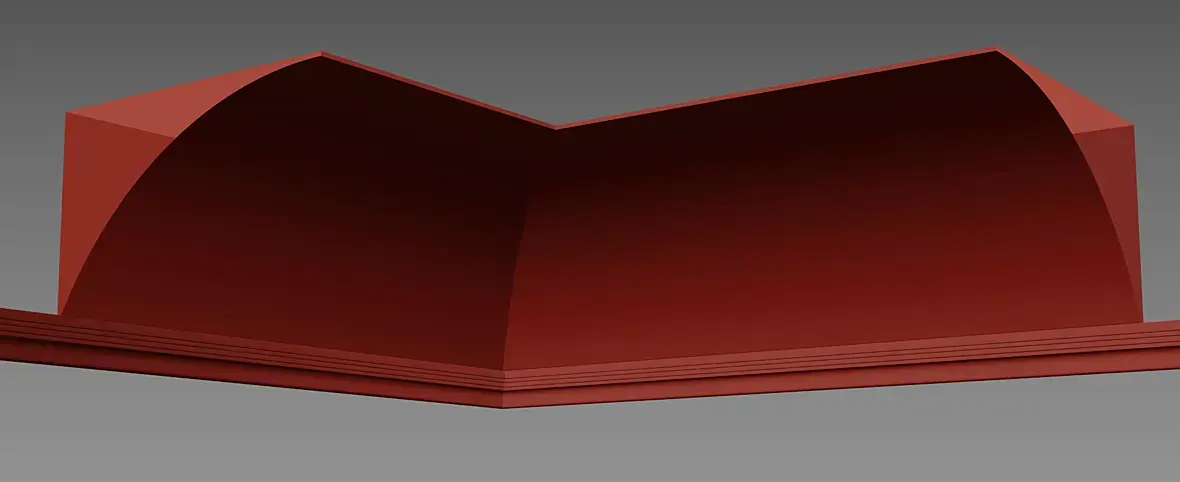 Делаю потолок и столкнулся с проблемкой. Саму лепнину сделал на плоскости а по факту она натянута на слегка скруглённый потолок. И если с прямыми участками проблем нет (погнул бендом и радуйся), то с углами я застрял. Не могу грамотно согнуть угловой элемент что-бы он скруглялся наполовину на одну сторону и на другую сторону.
