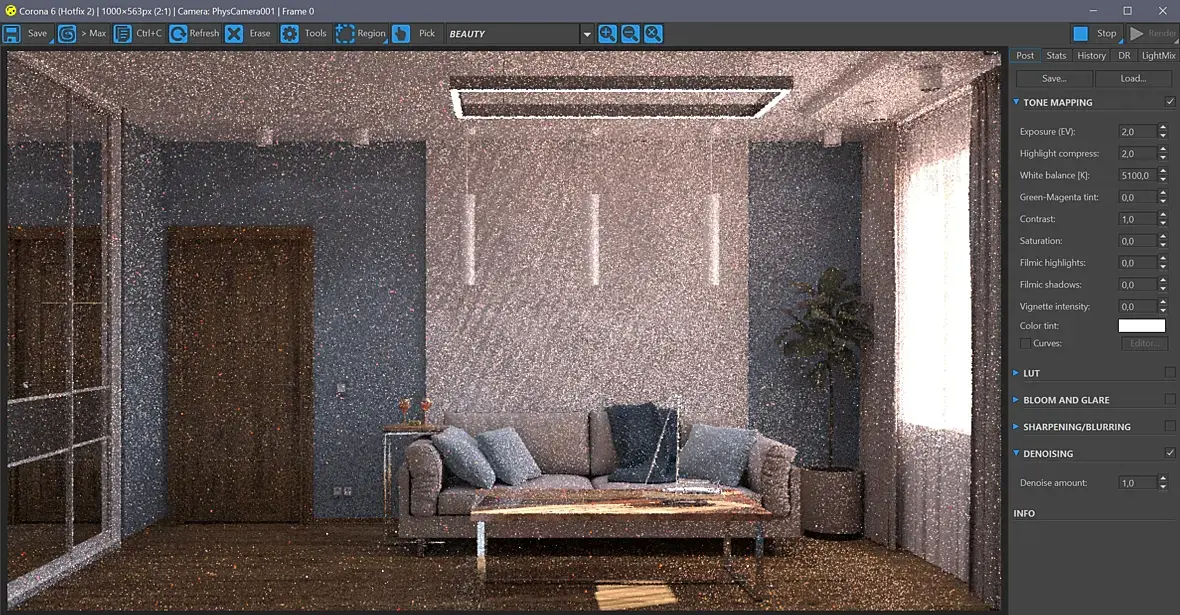 Вообщем и целом делал всё как по примеру, но при рендеринге получилась такая ерунда фото настроек и результат в вложении. Картинка пиксельная, много странных белых точек, при установке окна вообще всё желтеет. Все объекты конвертировал в корону. Что это может быть, кроме моих кривыхрук?