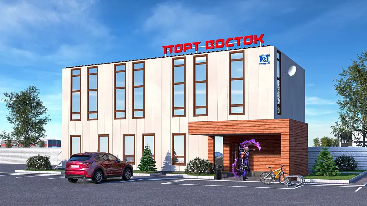 Для начала поставьте необходимое количество камер с человеческого ракурса и дальше наполняйте сцену необходимыми деталями и свет под ракурс поставьте. Можно рефы накачать с ЧЕЛОВЕЧЕСКОГО ракурса и какие-то элементы добавить оттуда и будет норм. Шедевра не будет так как основная модель промздание.