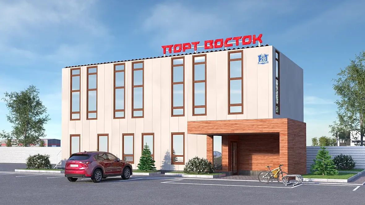 1. Материалы. Фасады, дерево, дорога, поработайте с декалями на переднем плане дороги. Возьмите нормальные материалы из Quixel Bridge. 2. Отражение в окнах. Если сверху в отражение неба еще можно поверить, то нижняя часть отражения очень ненастоящее. Проработайте передний план для отражения. 3. Найдите в нете референс похожего ракурса здания. Попробуйте подогнать вашу картинку к детализации референса. 4. Зелень. Не хватает проработки зелени, как в деревьях, так и в самой траве. 5. Крыша здания это что-то)) Нужно её смоделировать по нормальному, со всеми выступами (если так конечно черепица). Тоже самое почти и у кровли входной группы. 6. Освещение. Поиграйтесь с картами hdri и попробуйте разные варианты времени освещения, от утреннего до вечернего. Если понравится вечер, то добавьте группы света в окна и элементы декора как на внутренней части окна, так и на стенках внутри интерьера. Что бы это выглядело более правдиво.