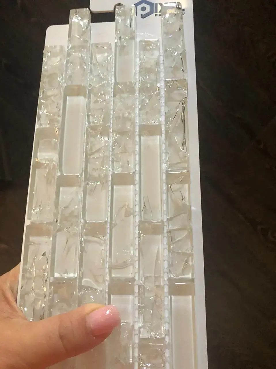 Вот такая, прислали референс, но подойдет и похожие бруски геометрией стекло с трещинами