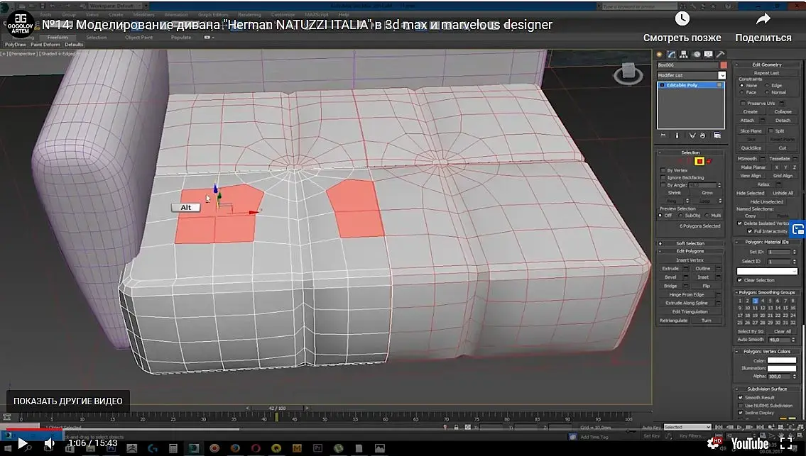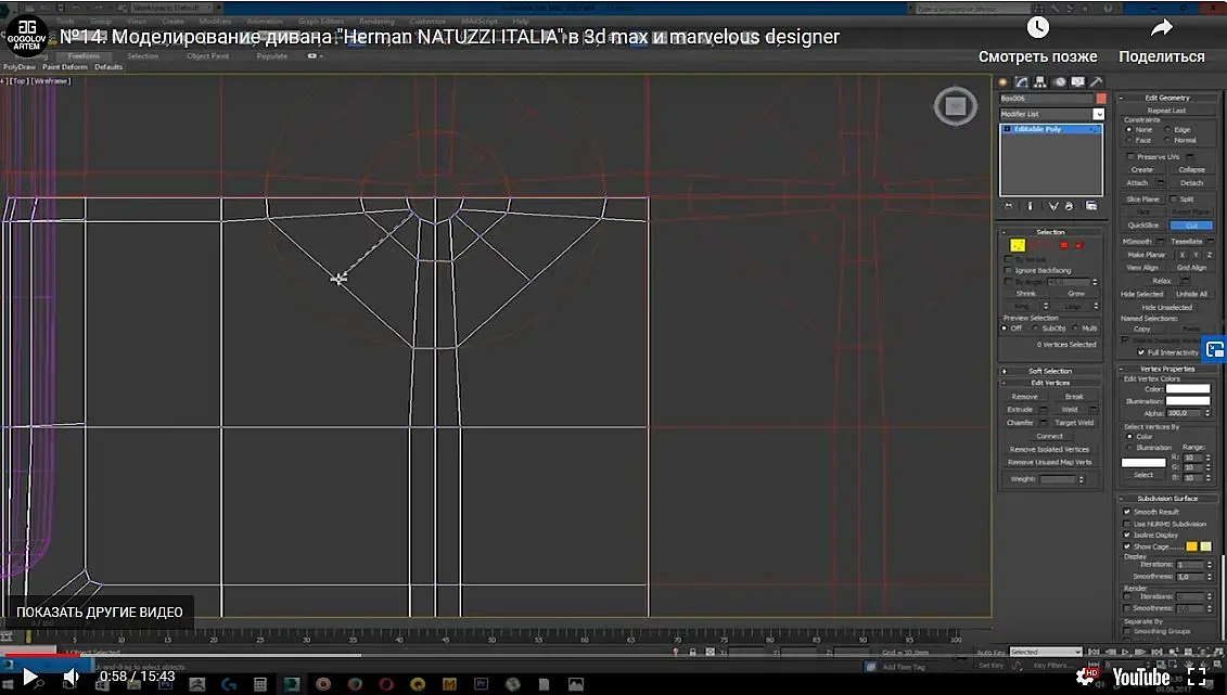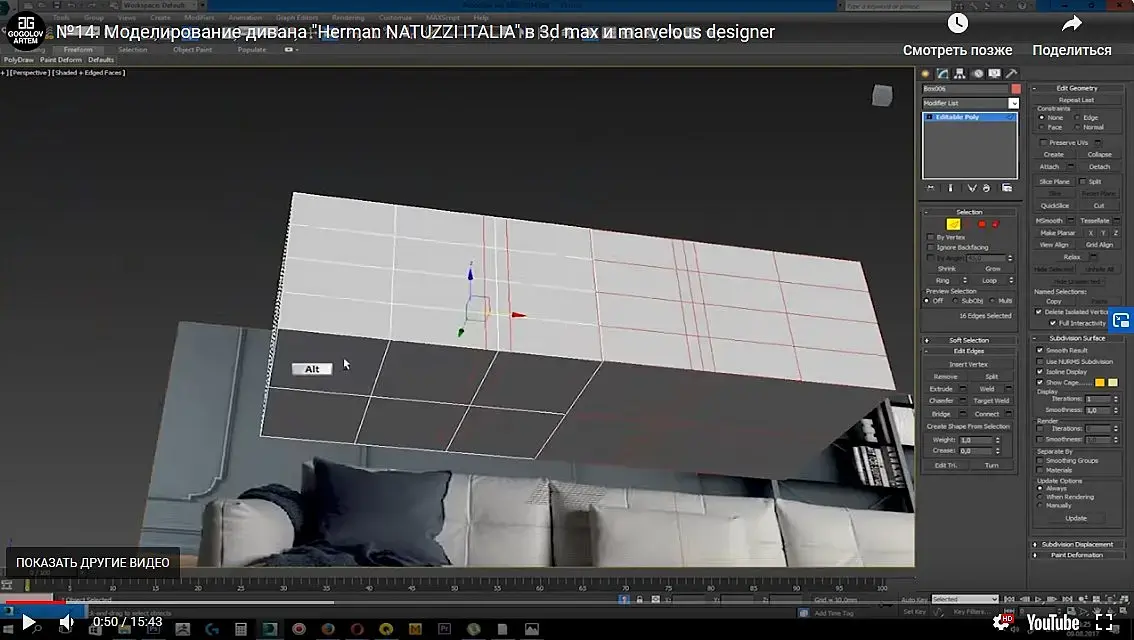 Если вы смотрите видео, как сделать диван, а моделирование начинается с плейна или бокса и до финалки, тогда я вообще не понимаю какой алгоритм действий вам еще нужен.
