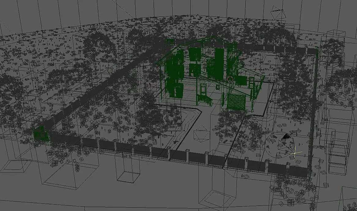 А в интерьерах/экстерьерах всякие тяжелые объекты можно заменить боксами для оптимизации. Например мои сцены выглядят так (понимаю, что это не сильно нагруженно, но ворочается очень бодро).