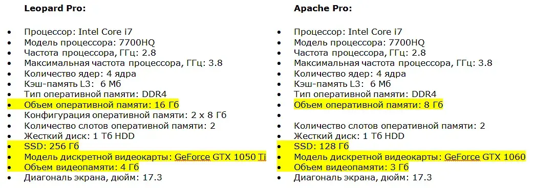 Планируется покупка нового ноутбука для работы в 3DS Max. Бюджет ограничен. Выбор пал на MSI GP72M 7REX Leopard Pro (9S7-1799D3-1437) и MSI GE72VR 7RF Apache Pro (9S7-179B11-419) - сейчас в магазине на них скидка. Параметры, в принципе, похожи, но у первого больше оперативка, а у второго мощнее видеокарта. Вот и не знаю, что выбирать...