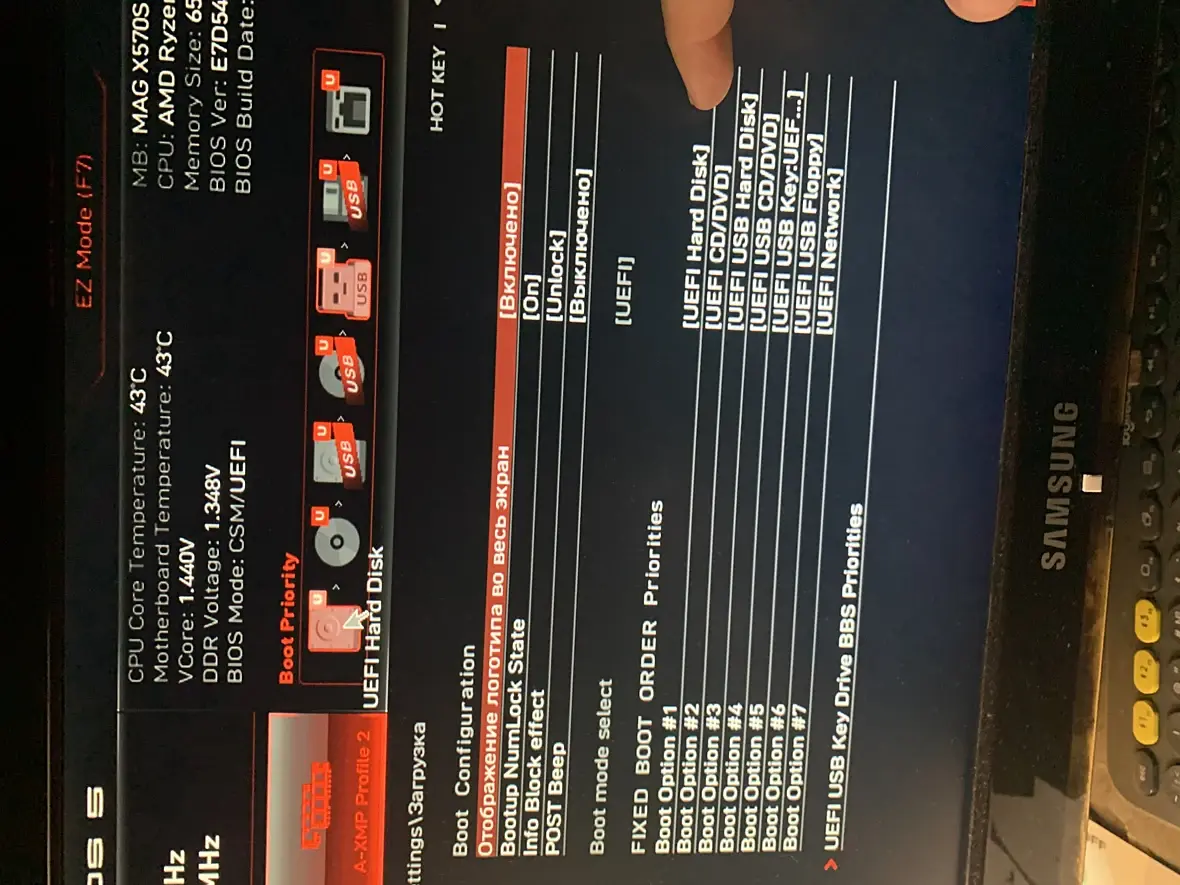 Т.е вот Boot Option №1 выбрать Samsung 860 EVO (SSD).