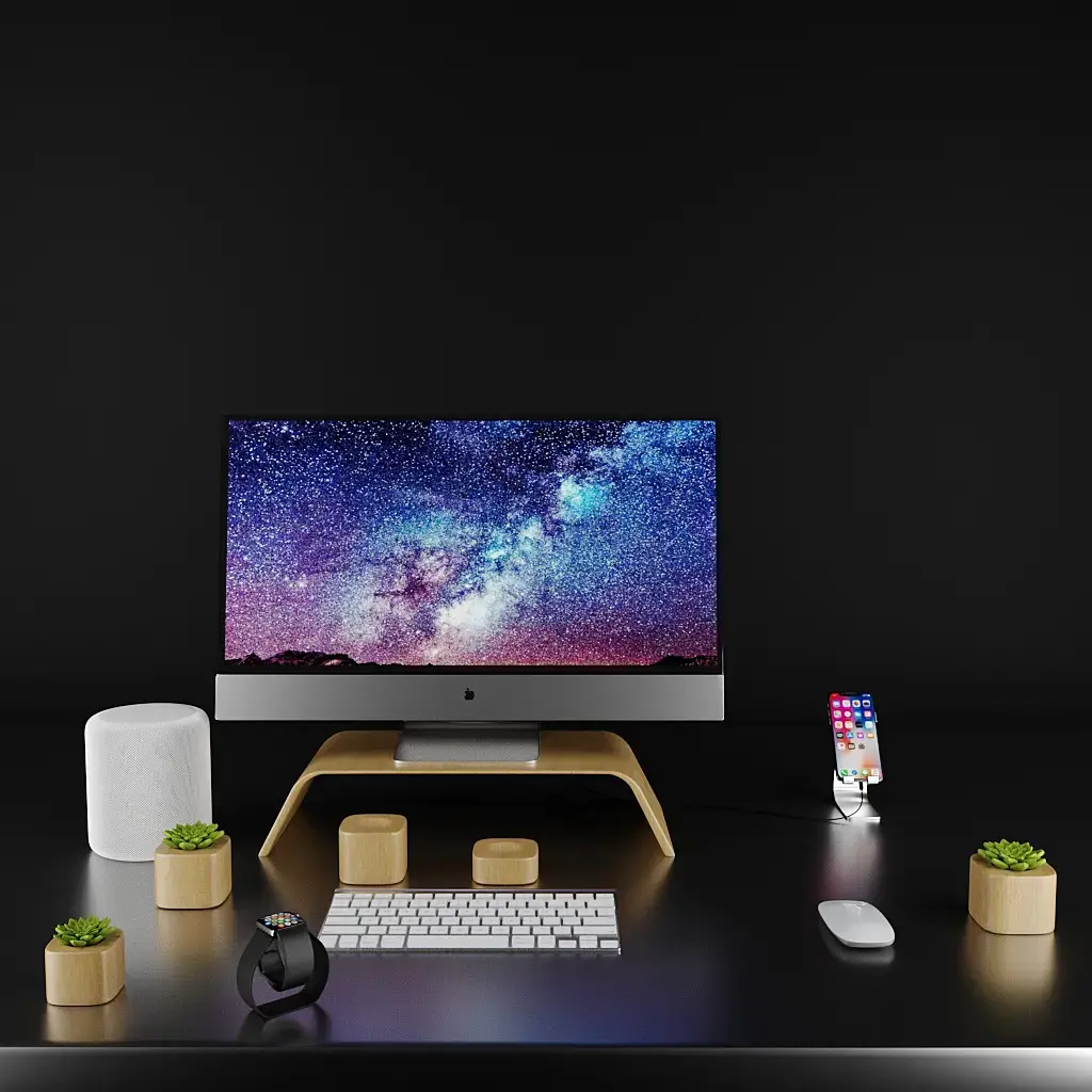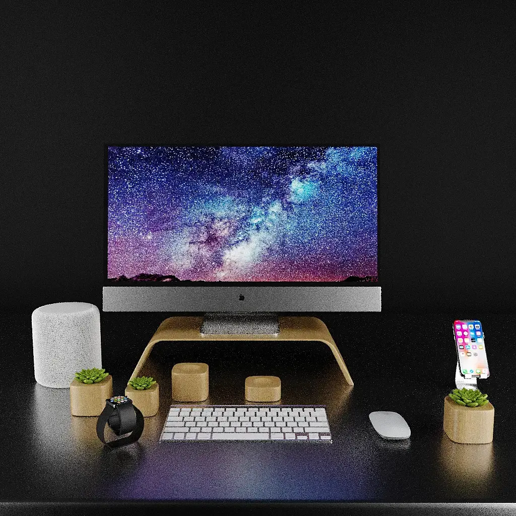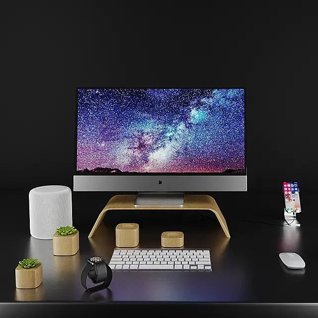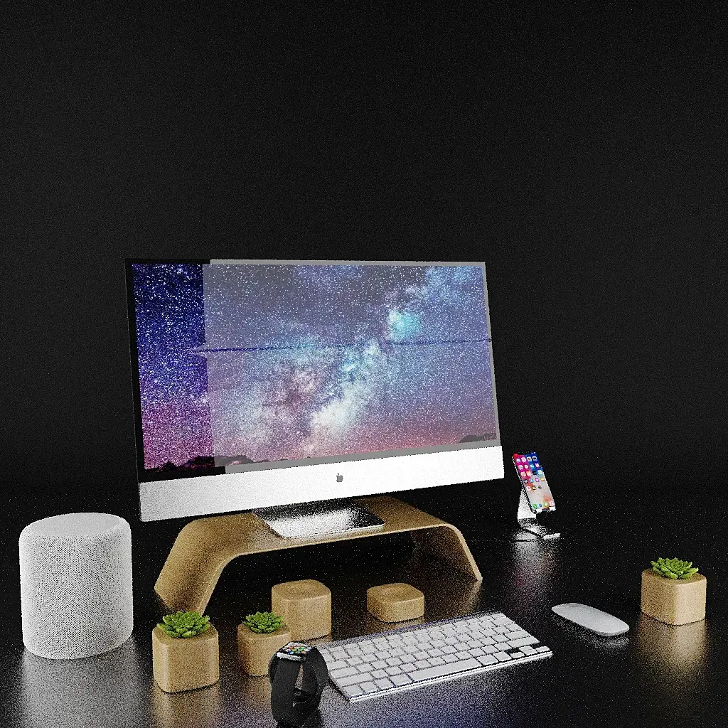 ну вот что мешает избавиться от крайнего правого горшочка и еще изометричнее сделать угол (то бишь избавиться от перспективы, почти доведя до параллельных прямых)? а мышку сделать перед клавиатурой? чтобы все в конечном счет гармонично вписалось в квадрат, ну