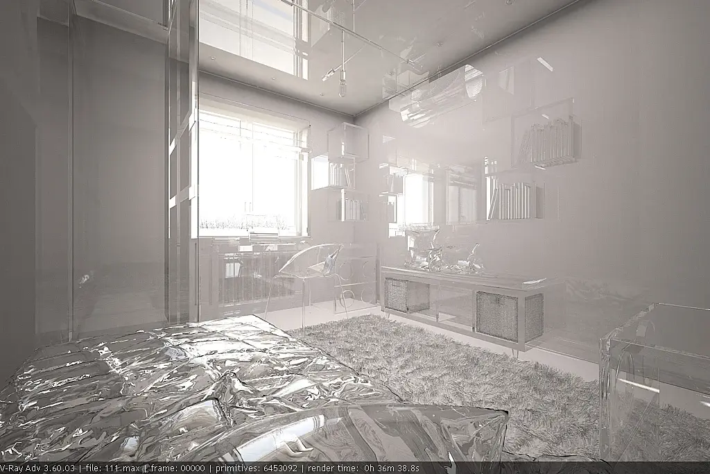 Посчитать эту же сцену с нормальными материалами выйдет ну потолок минут 20-30 при грамотной настройке