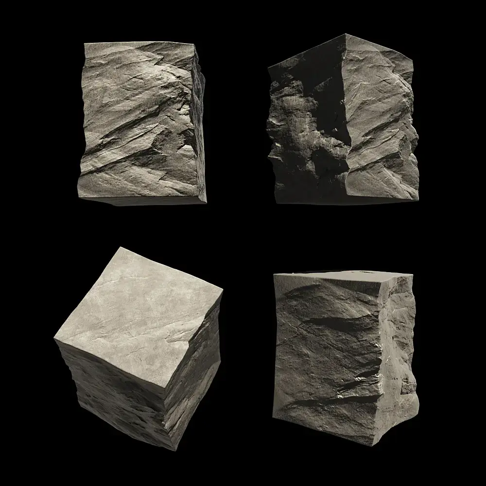 в софте для скульпта такое легко делается, просто нужно найти кисти скал, пару кликов и все