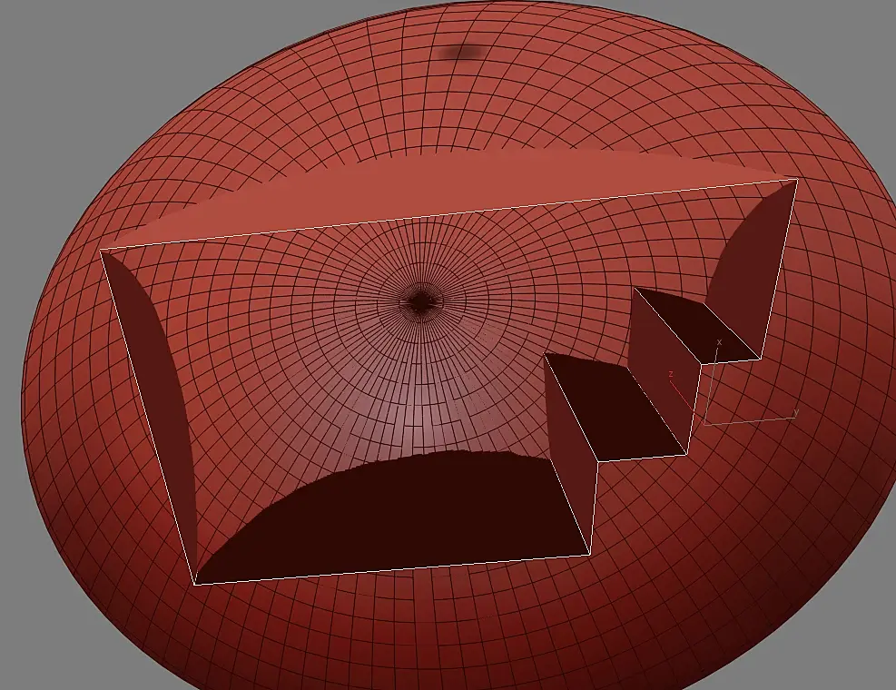 Накрыл сферой. Сверху или снизу отдельно нарисовал сплайнами кривые +экструд=эдит поли. Вырезал булями эдит поли+Резет икс форм=эдит поли и каждую обрисовал сплайном с 3д привязкой=эдит поли+топология катами. Резет икс форм=эдит поли. Дальше играйся сколько угодно.