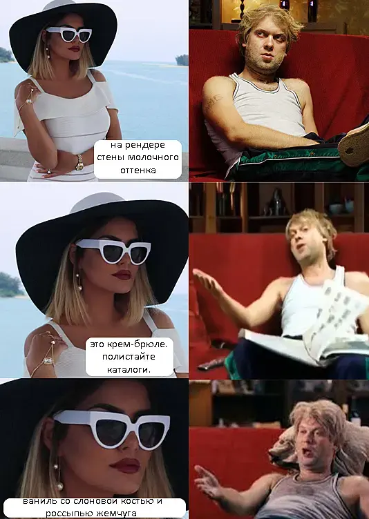 muchacha, Я когда только начинал дизайнерить, у меня в ТЗ было "цвет вишнёвой пенки", но пришлось перерэндирить, потому что не попал с цветом, по мнению заказчика. Вот я негодовал, я эту вишнёвую пенку всё детство с варенья снимал, я её и ел и на хлеб намазывал и в молоко кидал - да я долбаный эксперт по вишнёвой пенке.