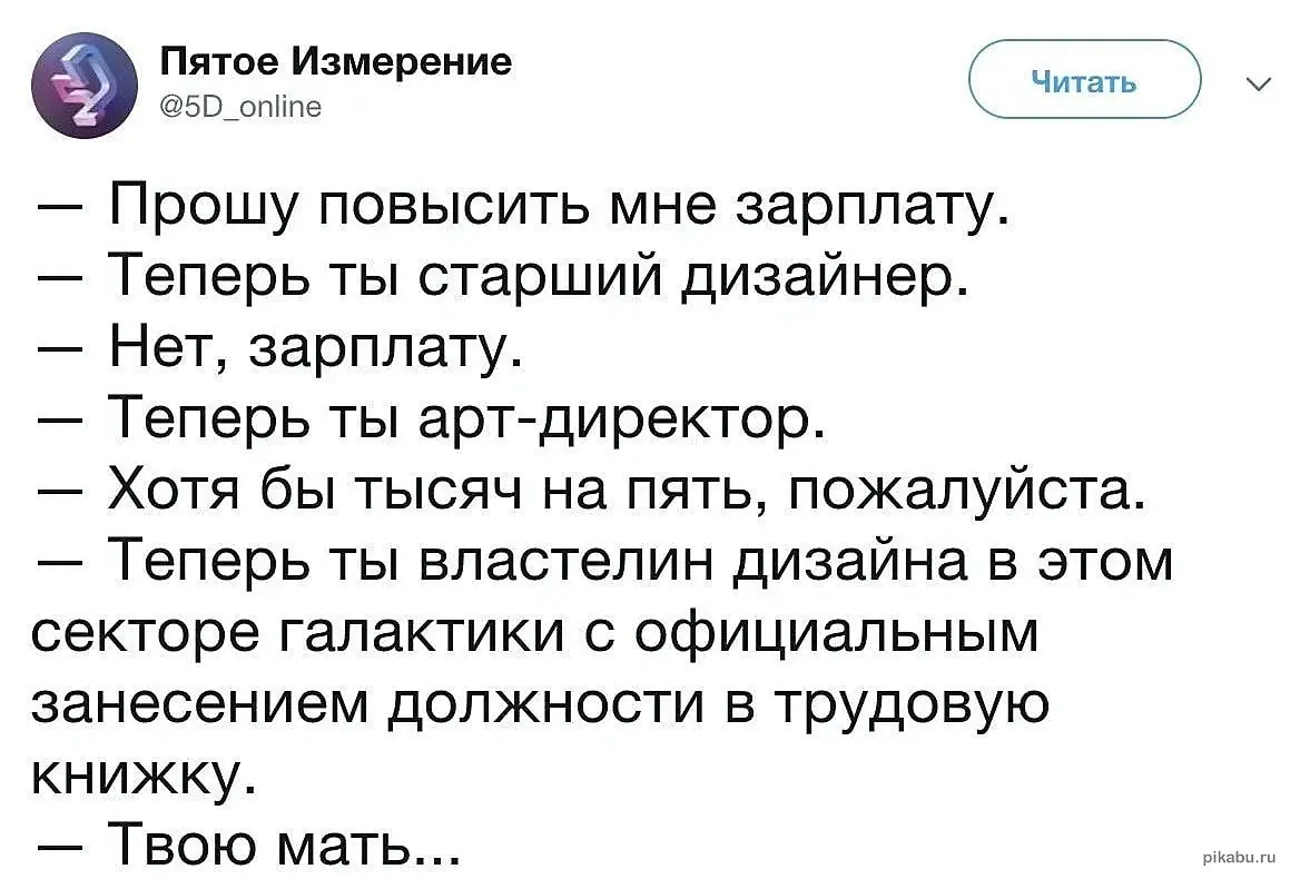 Хотя с таким подходом на таком месте потом скакнуть в зп. Посмотрели в трудовую, оп, арт-директор. И стал им на новом месте с зп x3.
