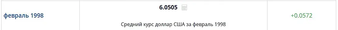 98-ой это просто памятная дата: "1 января 1998 года правительство и ЦБ провели деноминацию рубля. Теперь 1 новый рубль равнялся 1000 старых рублей."... "17 августа 1998 года правительство объявило дефолт по внутренним обязательствам, а курс рубля к концу упал до 21-22 рублей за доллар."