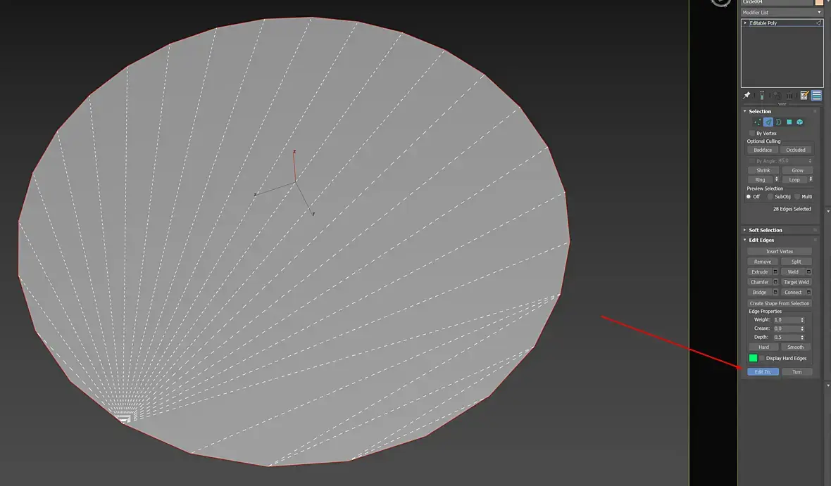 я вот об этом соединительном ребре говорил , в новых максах оно невидимо, но edit tri с ним работать не будет, но при этом его можно выделить, если наугад поймать