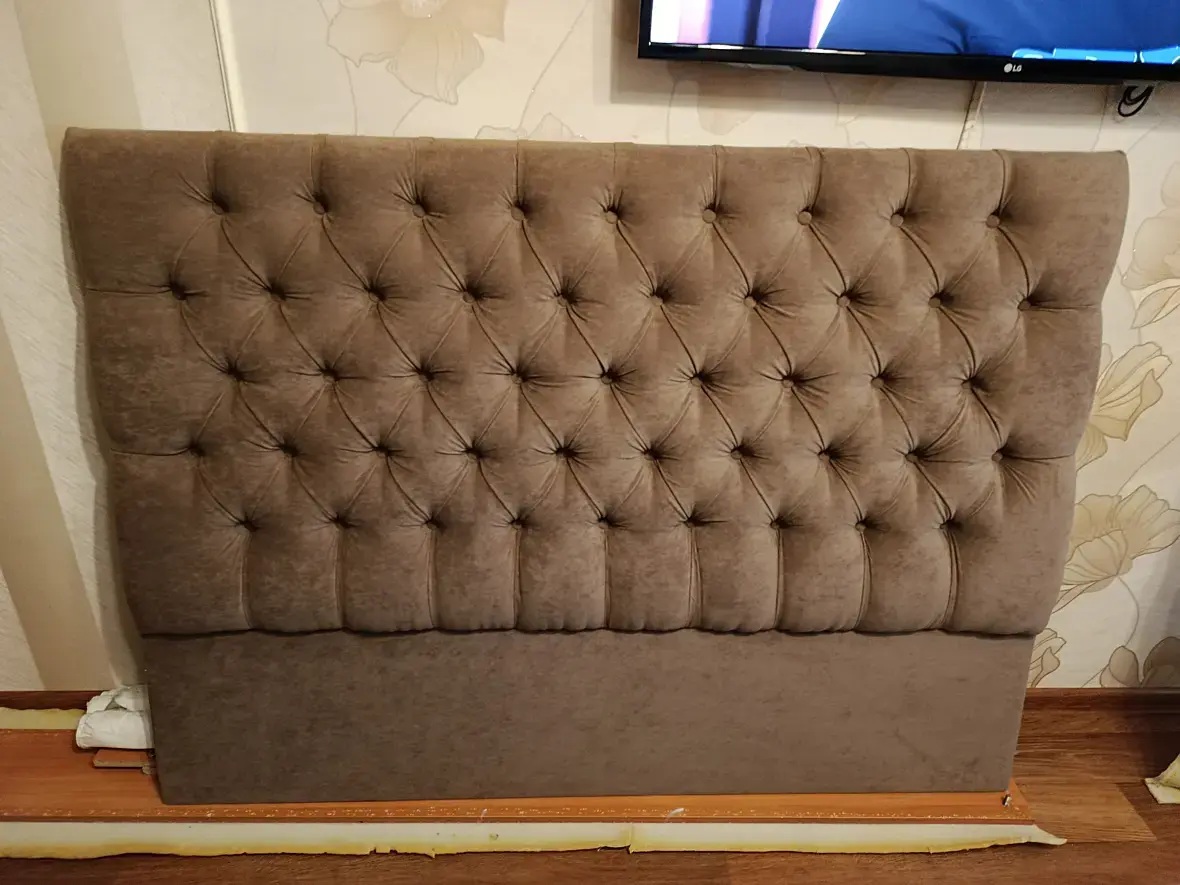 В 3D достаточно неплохо научился делать каретную стяжку (капитоне), на кровати изголовье было не высоким, всё время головой об стену шарахался. Решил попробовать сделать сам изголовье, кайф, голова теперь в безопасности!😁