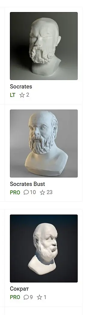 Например мне для проекта недавно нужен был бюст "Сократа" Вот что я нашел. на 3ddd, они не похожи на оригинал... Вот теперь делаю свой вариант.