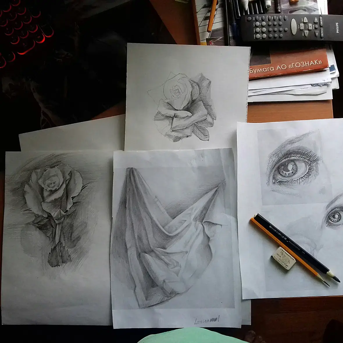 Тоже несколько лет назад решил вспомнить как рисовать, но что то нет времени и довольно тяжко это все без практики)) Это меня озарение настигло ,проснулся и нарисовал то что на стуле у пианино лежало с утра