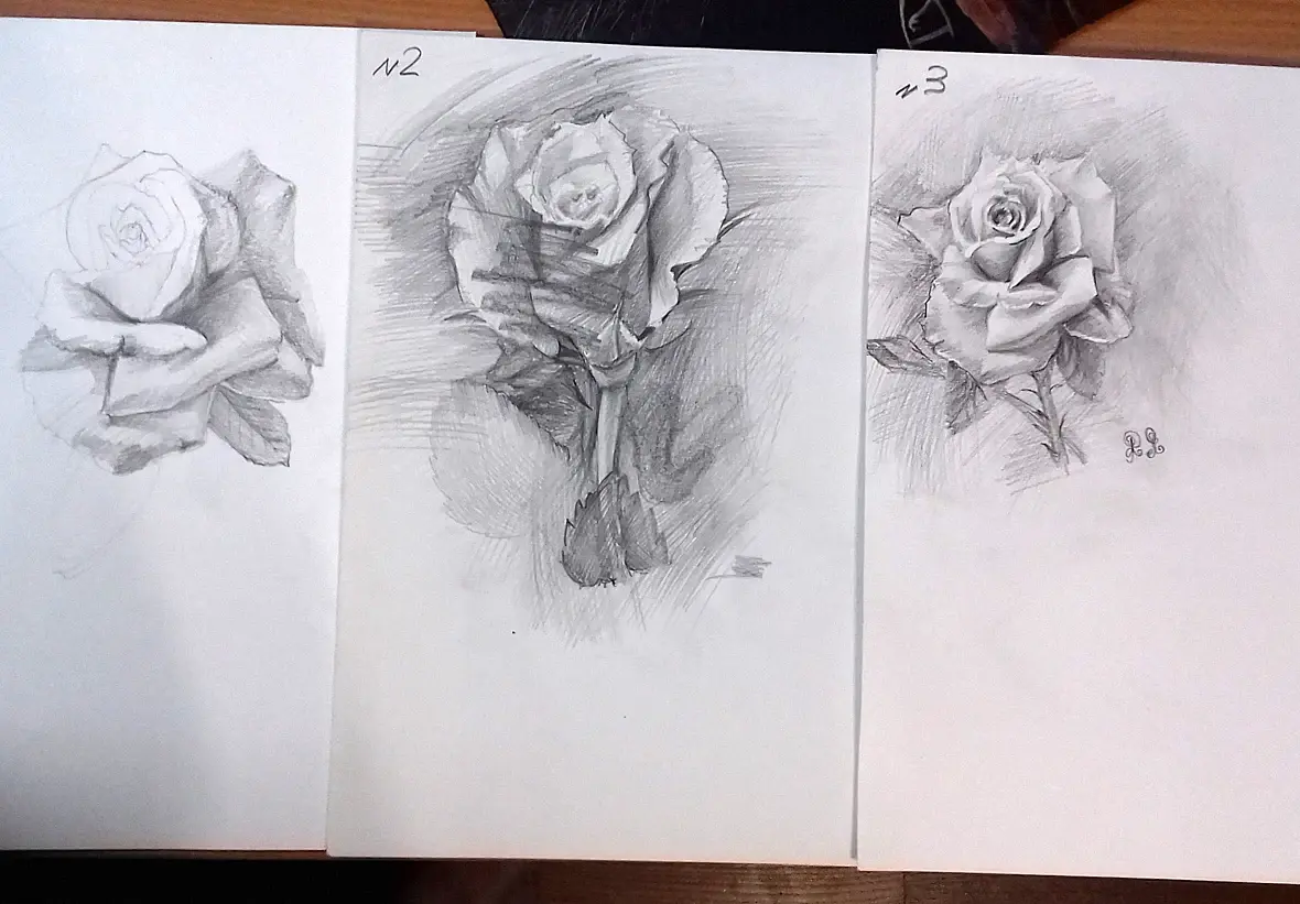 некоторые вещи перерисовывал по 3-5 раз. то классная роза но плохой фон. то еще что нибудь... то просто туплю... )) не понимаю как должно быть. теперь стал параллельно смотреть ролики на ютуб - теорию подгонять - освежать.