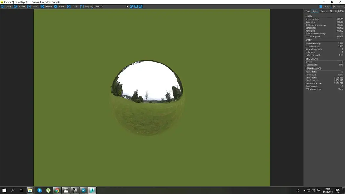 И правда)Глупо так, получил проблему на ровном месте. Всегда работаю в ортографической проекции и даже не подумал что это может так повлиять на hdriСпасибо!))