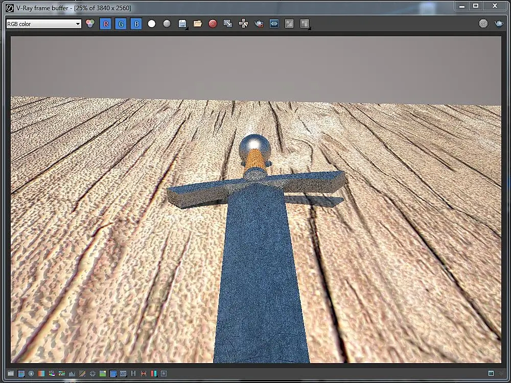 Подскажите, пожалуйста в чем может быть проблема? При рендеринге материал меча получается с шумом (в окне рендеринга шум вообще дикий). В чем может быть проблема - настройки материала, освещения или рендеринга?