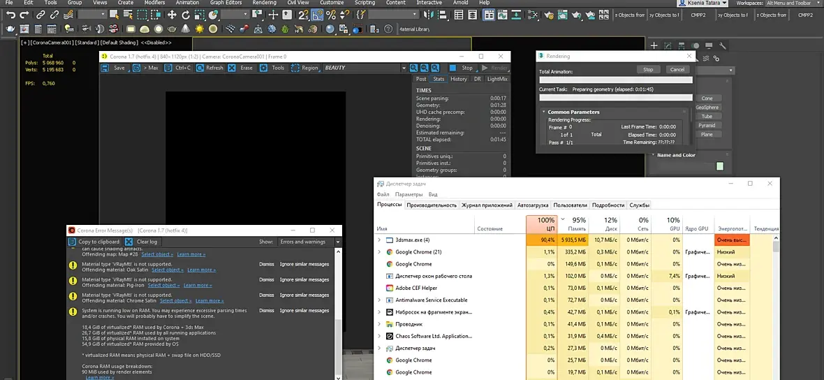 | Какая может быть причина ? Одна сцена с большим количеством полигонов рендерится, вторая с меньшим количеством полигонов нет