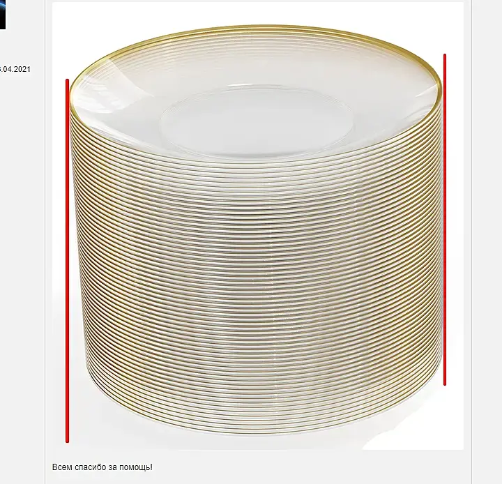 Всем привет! Необходимо сделать рендер набора стеклянных тарелок с золотым ободом на белом фоне.