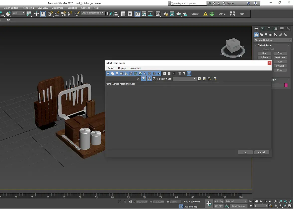 Привет всем! Есть ли какая то причина, по которой в сцене в табличке select object (h) нет никаких объектов, все слой, кнопки включены, при этом во вкладке scene explorer все есть. Баг? 3ds max 2017.