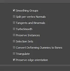 Смысл в том, чтоб сохранить триангуляцию и настройки бинормалов и групп сглаживания так, чтоб конечная программа их не поруинила. Если не поможет - то развертку фиксь.