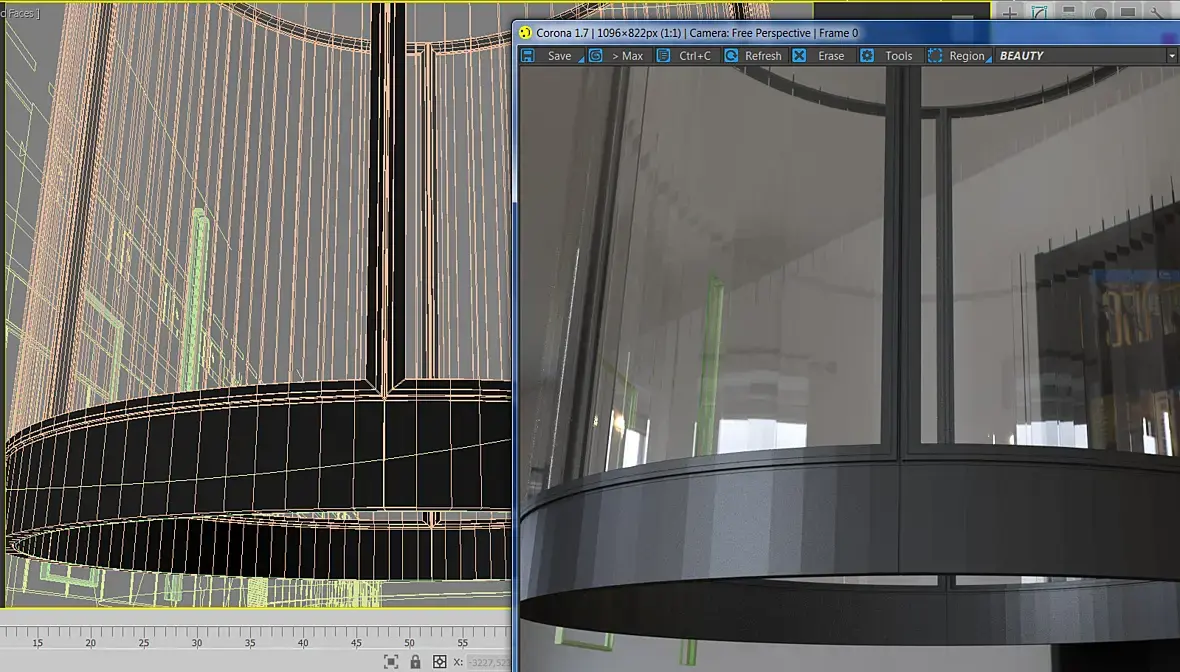 тут 2 варианта, либо конвертить в меш, сшивать велдить сегменты и настраивать сглаживание, либо для секций со стеклом делать более длинные сегменты, у которых несколько ребер вертикальных по всей длине, чтоб они нормально гнуться, но это тоже не панацея