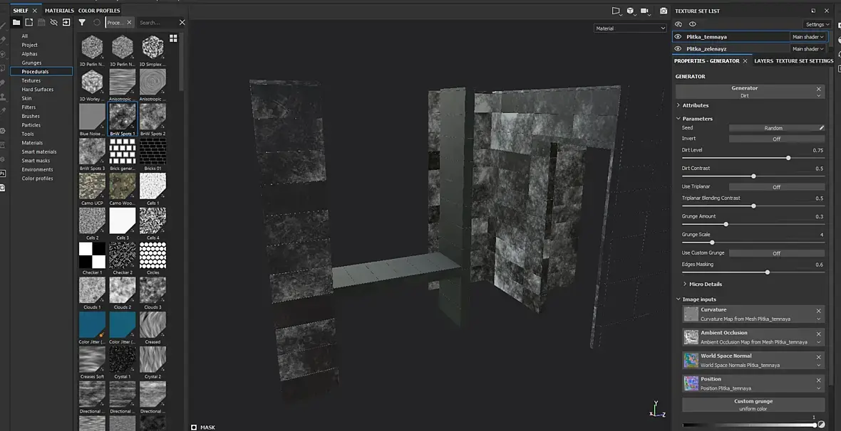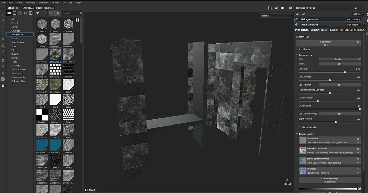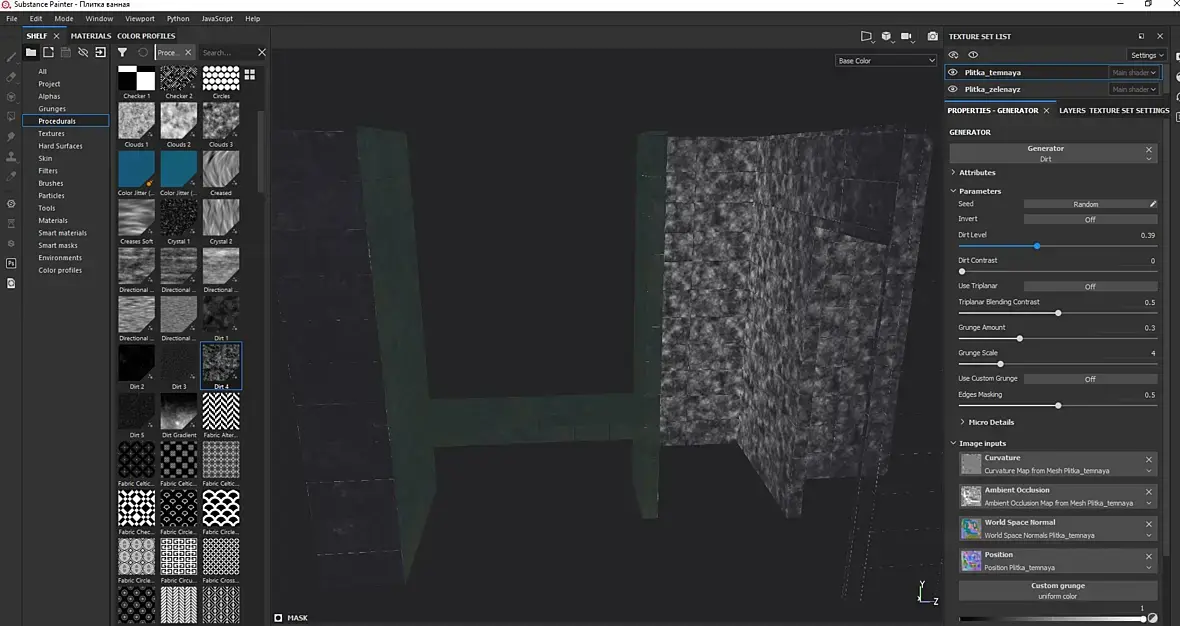 Привет. Пытаюсь наложить маску на объект, но при наложении dirt ложится неравномерно и исходит от одного угла, и распространяется уже по всему объекту. В чем может быть проблема?