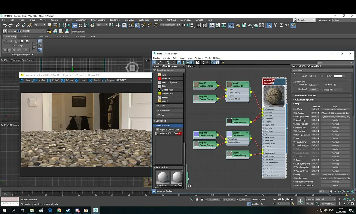| Всем привет! Есть такие текстуры как arroway gravel. Нужна галька, посмотрел по видео уроку, как создается похожий материал, получилось такое.