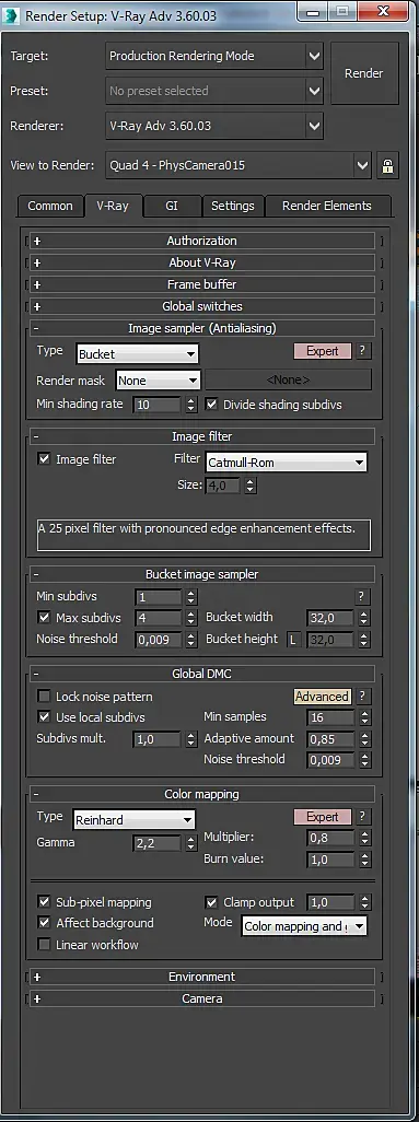 Здравствуйте форумчане. Моделирую интерьер квартиры. В одной из комнат одно окно. За окном фон, обычный vraymtl. Освещал при помощи связки vray sun+sky. Света в комнате недостаточно, попробовал поставить vray dome light и в texture кинуть vray sky и увеличить multiplier. Все хорошо, но фон за окном и само окно с сильным пересветом. Помогите пожалуйста выбраться из этой ситуации.