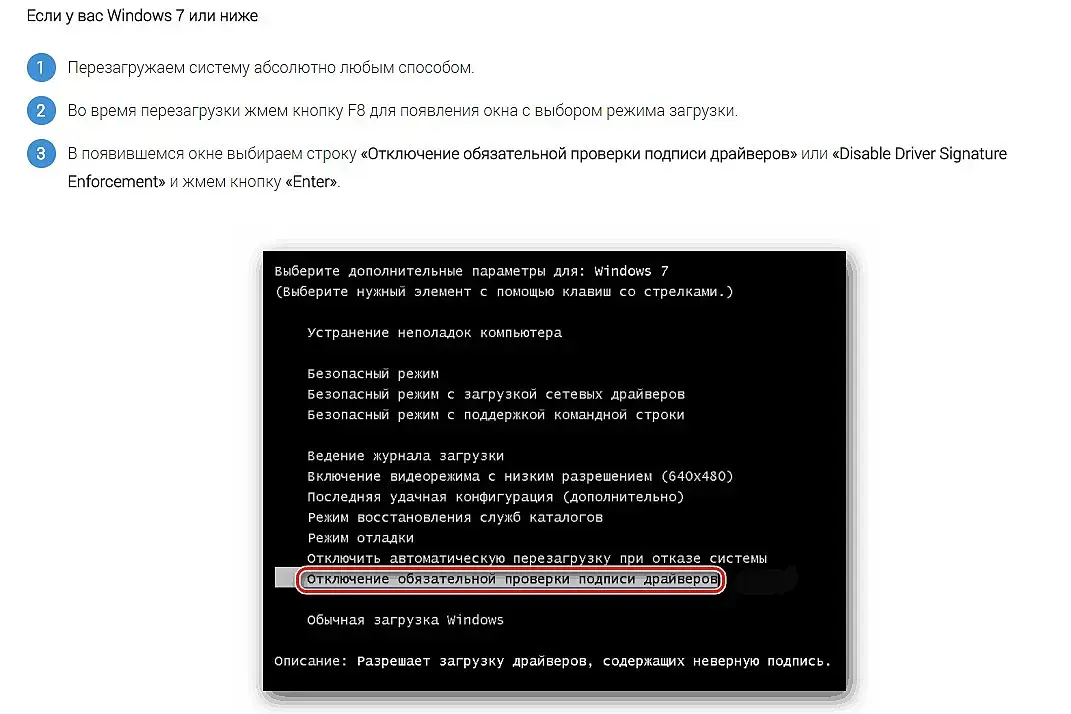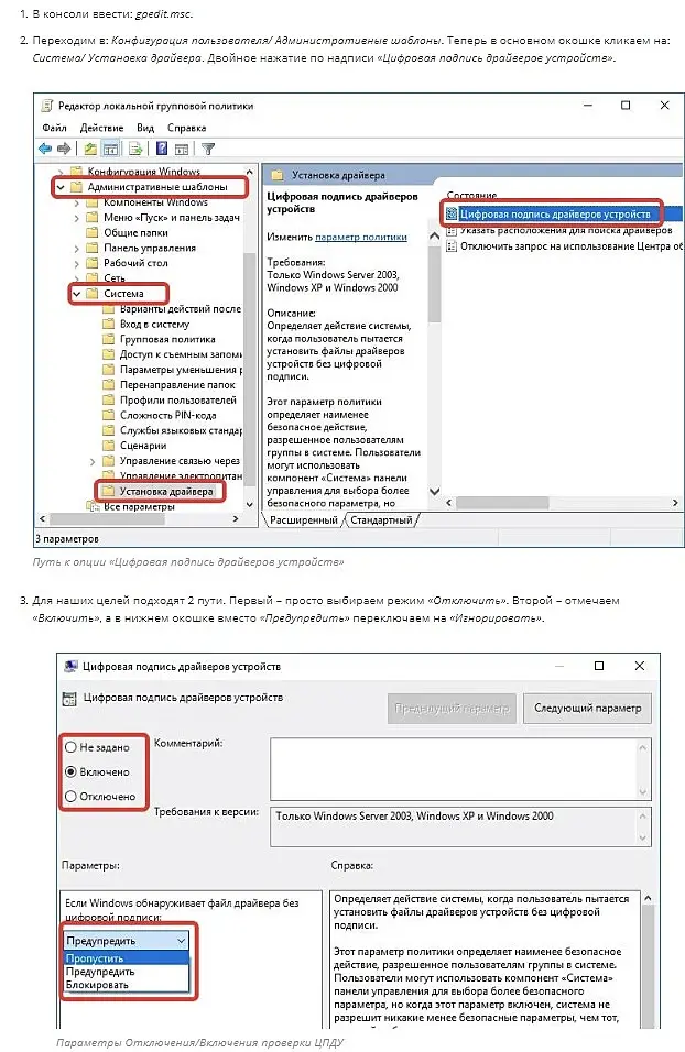 Из танцев с бубном было сделано следующее. Отключение цифровой подписи.