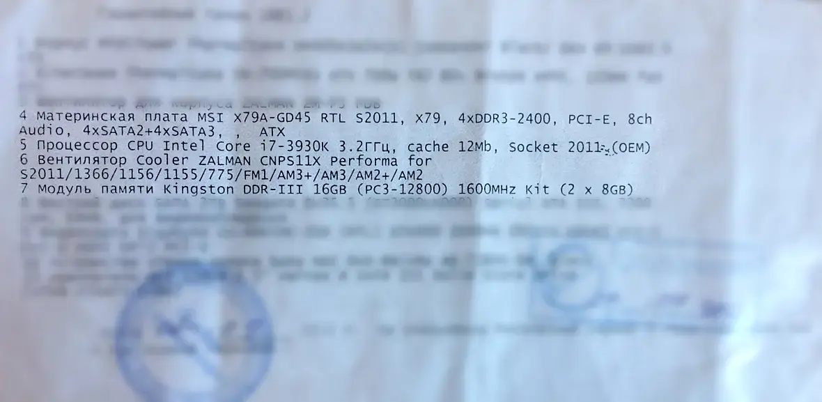 Компьютер собирался в 2012 г. Все чеки покупки сохранены (на всякий случай). 2 плашки оперативной памяти докупались отдельно (см. картинки), поэтому другого цвета, частота у них одна. За все время использования регулярно менял термопасту, компьютер чистил от пыли. За комплект не стыдно. Последний 2 года использовал как ноду.