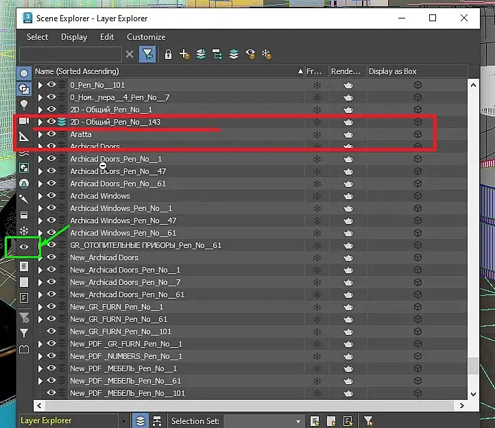 при нажатии на глазик - слой просто исчезает совсем.То есть, он не отображается закрытым - он нафиг пропадает из таблицы Layer Explorer с концами и со всем содержимым!!