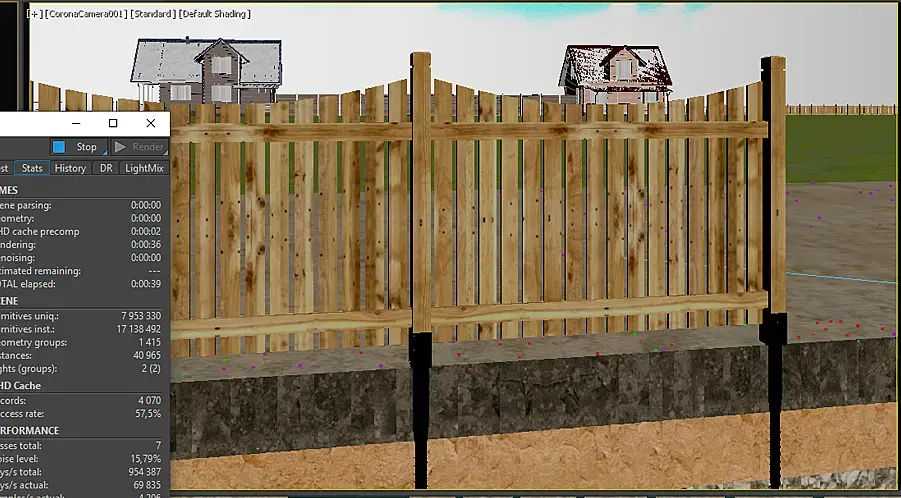 2. При рендере, в некотрых промежутках кадров пропадают материалы с некоторых (не со всех) объектов (земля, трава, деревянный забор и т.д.)