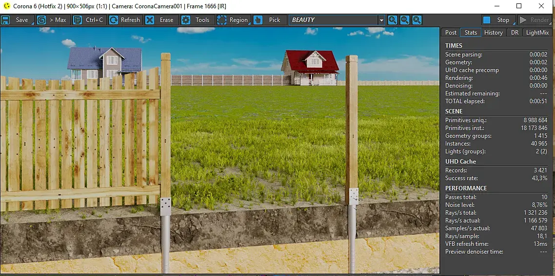 2. При рендере, в некотрых промежутках кадров пропадают материалы с некоторых (не со всех) объектов (земля, трава, деревянный забор и т.д.)
