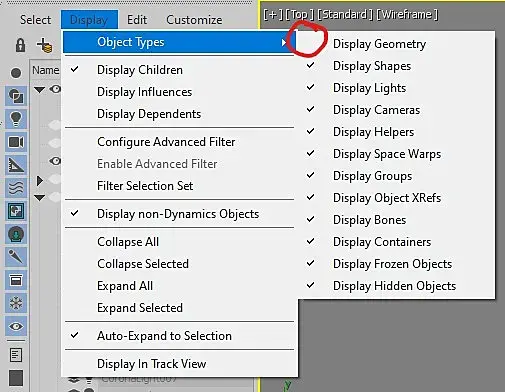 Слева голубые квадраты с иконками - это тоже самое. Конечно же оно включено ибо объекты видны, а то что вы показали - это вкл/выкл геометрию. Это не то. По итогу, решения не нашел, но проект сдали. В чем причина - я хз