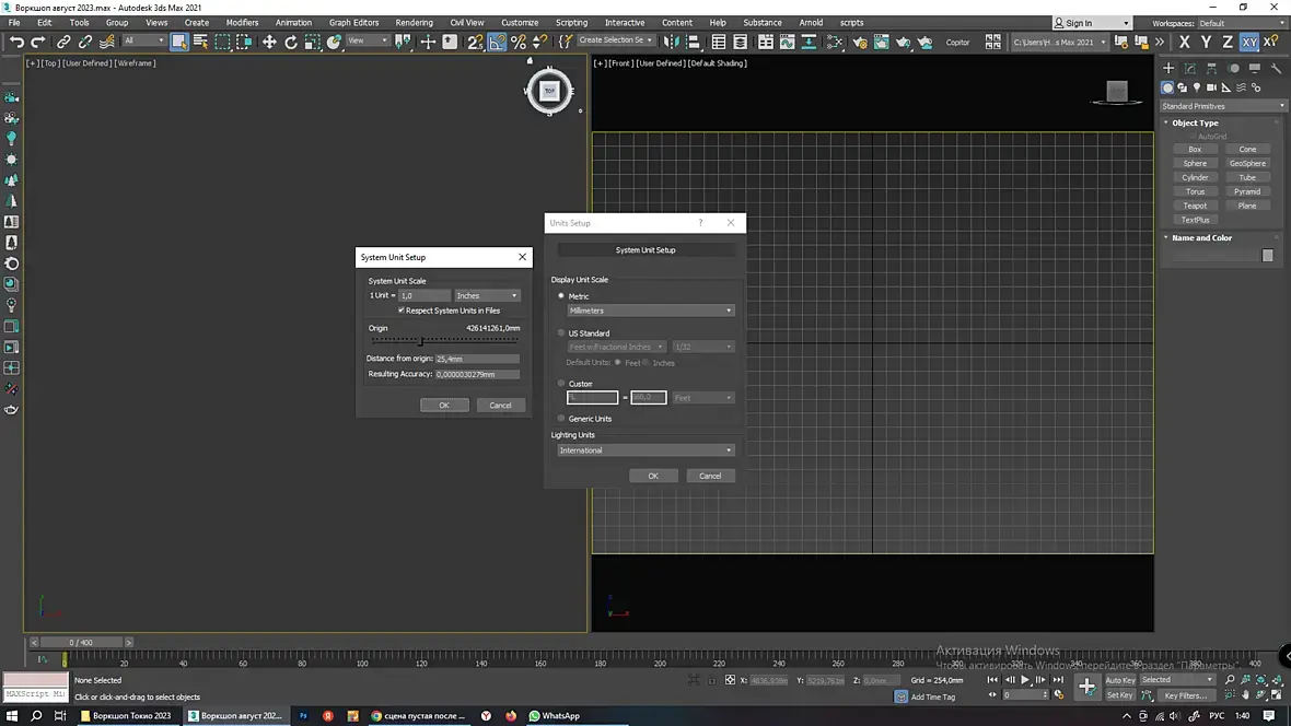 Не смогла найти ответа на свой вопрос. Буду благодарна, если подскажете, почему так получилось и можно ли исправить. Перекачала с флешки сцену, сделанную на дачном компьютере (версии макса совпадают, 2021). Хотела доработать дома. Но при открытии сцена абсолютно пустая, хоть и весит файл 168 мб. Единственное что, макс пишет, что сцена сделана не в мм, а в inches. Макс спрашивал перед открытием, что с этим делать, но выбор ответа на состояние сцены тоже не влияет. Кстати, другая сцена перенеслась абсолютно нормально.