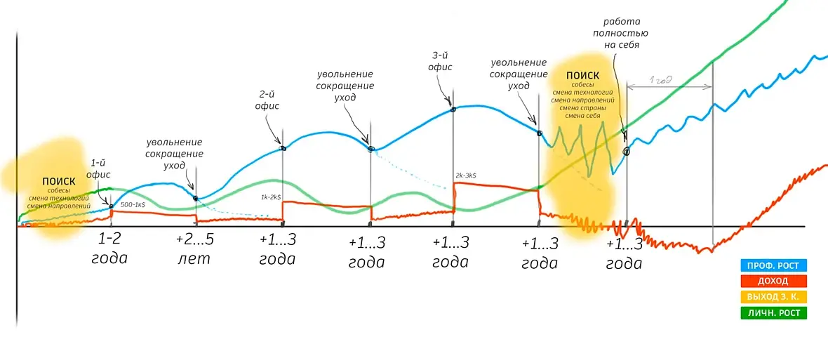 Вы извините, но интерпретировать такие графики - крайне тяжело. По горизонтальной оси - годы. А по вертикальной что? Что-то хорошее в вакууме, чем выше - тем лучше. Расшифровки "выход з.к". нет, что за желтый налёт отмечен - не понятно. Я бы вообще т.н. лепестковую диаграмму для каждого этапа сделал