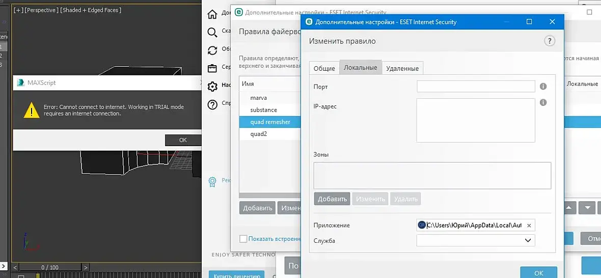 Снёс антивир соответственно с файрволом. В родном брандмауэре прописаны правила. Та же ошибка.