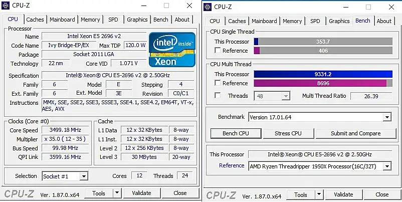 2 x Xeon E5-2696 v2 (24 ядра/48 потоков) @2.5-3.5GHz