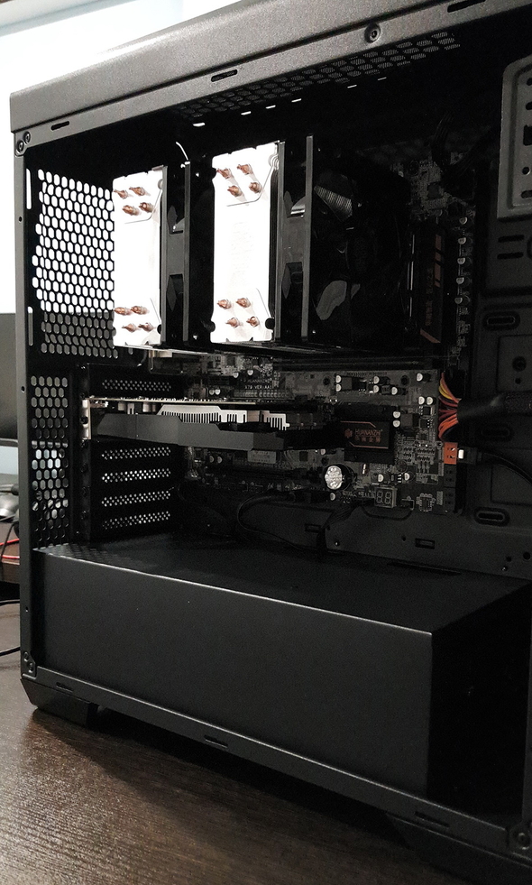 Кстати увидел фото и решил подсказать: последние тачки собираю направляя вентиляторы паралельно земле, в верхнюю крышку корпуса ставлю 2-3 вентиля на вдув, процовые вентили соответственно ориентирую так чтобы они этот воздух протягивали далее в середину корпуса. В этом случае процы могут потерять от 5 до 10 градусов, что важно для поддерживающих турборежимы. Ну и плюс пыли сверху поменее, чем втягивают вентили снизу или сбоков.